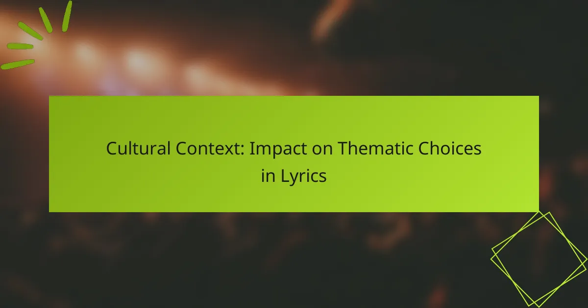 Cultural context significantly shapes the thematic choices in lyrics by reflecting the values, beliefs, and experiences of a society. Artists often draw inspiration from their surroundings, leading to lyrics that resonate with listeners on a personal and communal level.